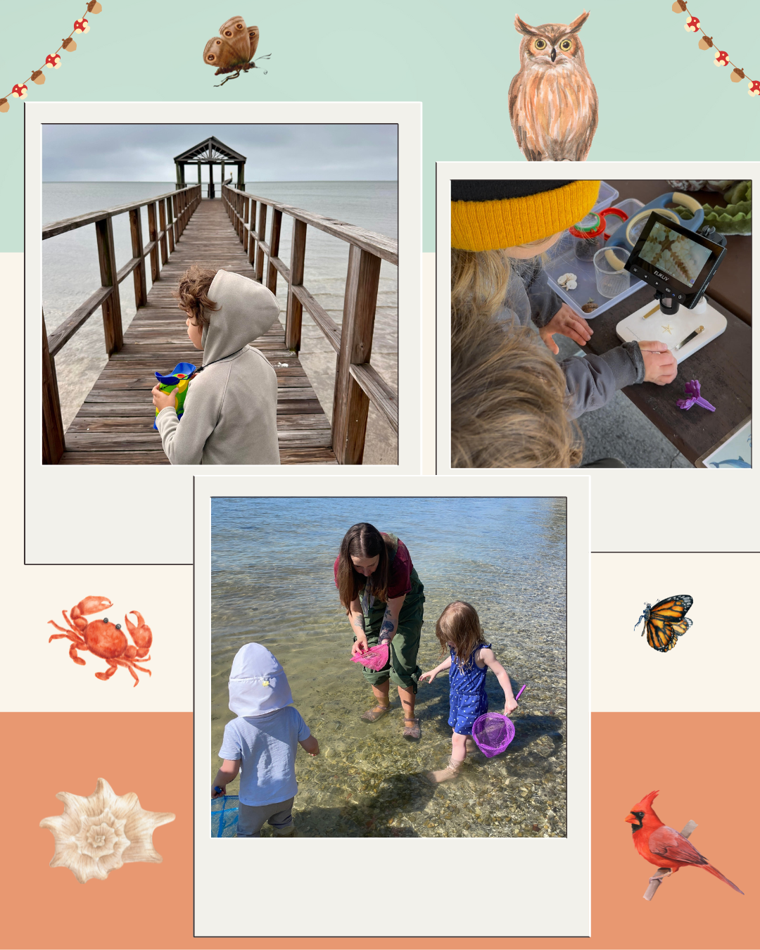 10:10am–12:00pm: Open-ended learning invitations in our oak tree space and exploration time at the Boca Ciega Bay shoreline